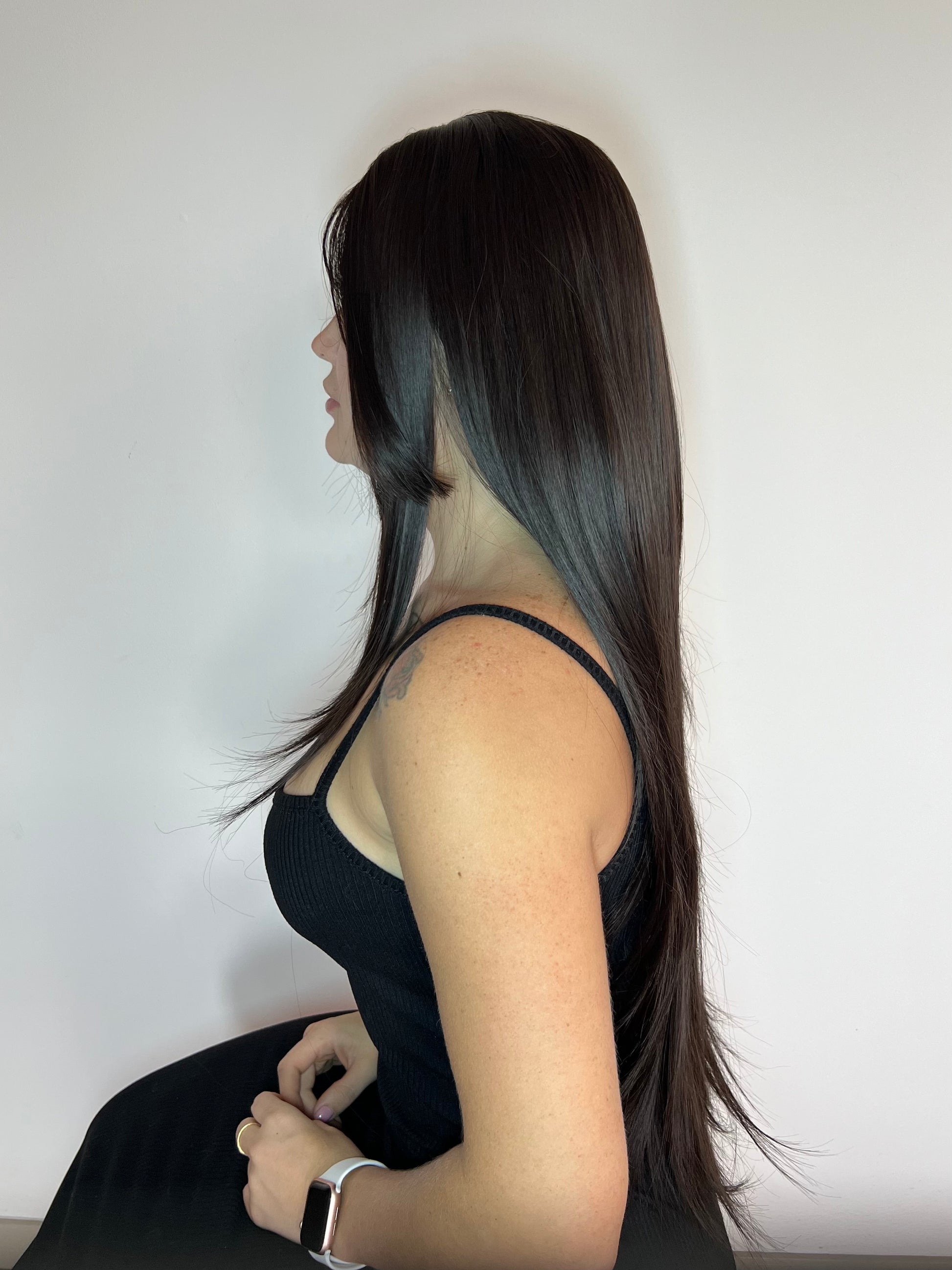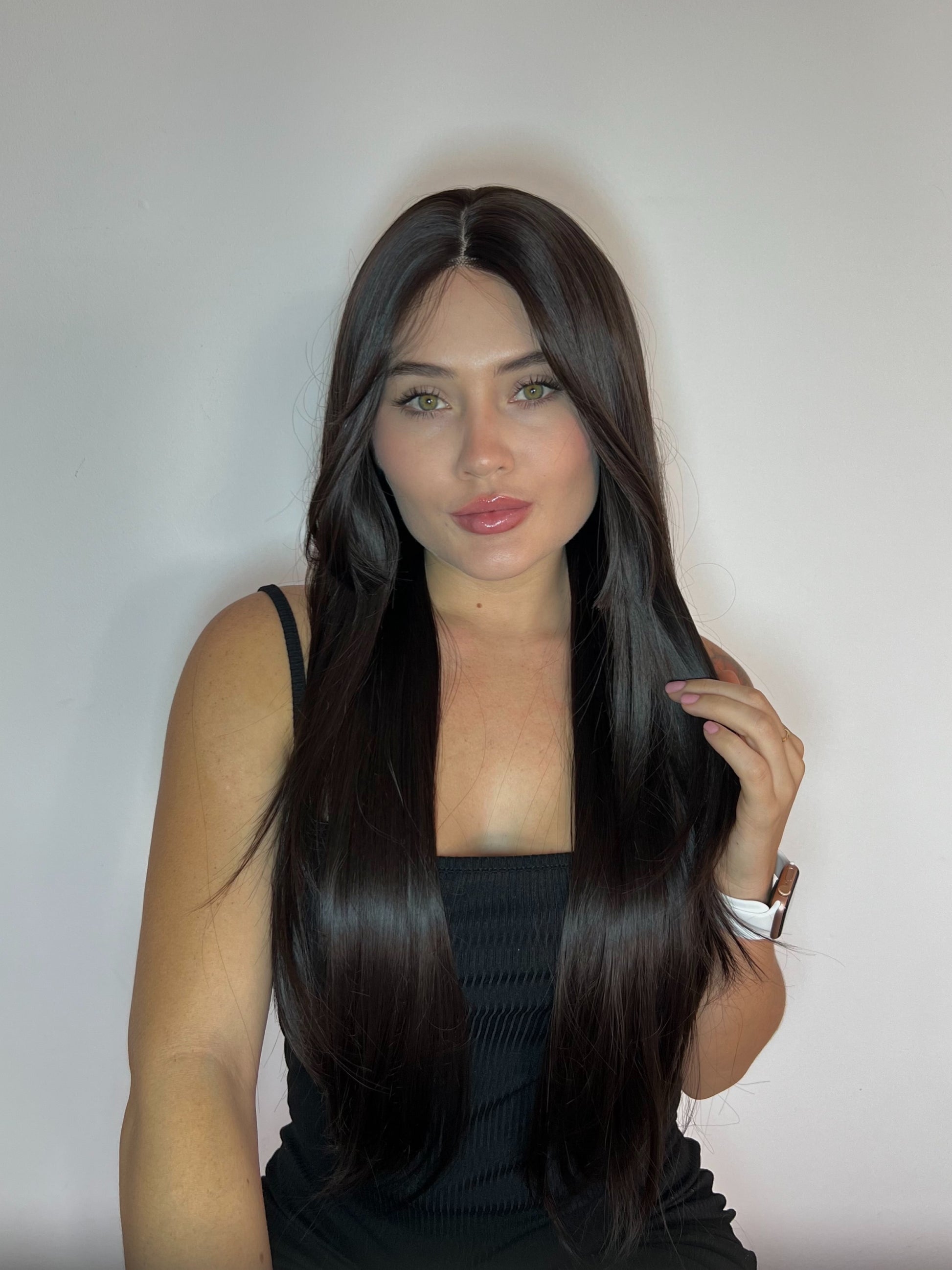 Confeccionada en lace premium, esta peluca ofrece un acabado hiperrealista en la raíz, permitiendo una apariencia totalmente natural 🌌. Su caída larga, lacia y sedosa envuelve el rostro con armonía, dando la sensación de un cabello cuidado, saludable y lleno de magnetismo.