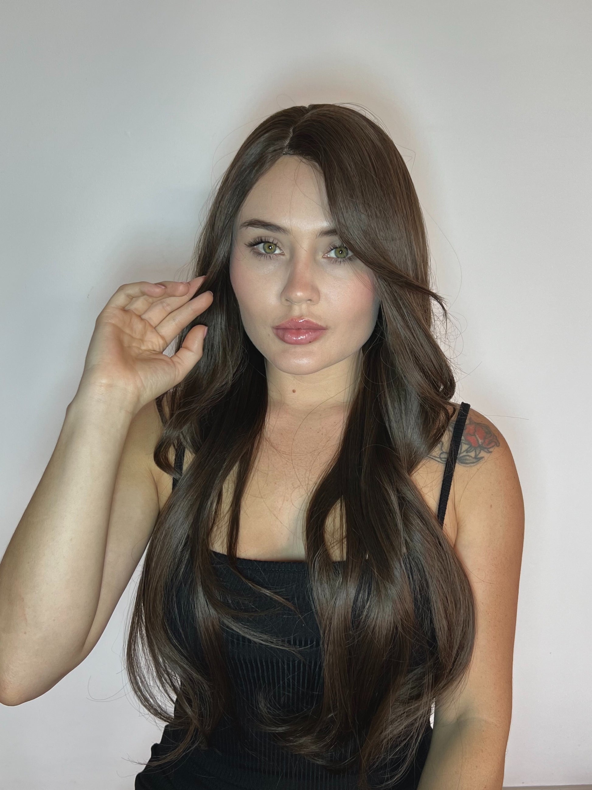 Gracias a su confección en lace premium, ofrece una raíz hiperrealista, que se integra perfectamente con tu piel, dando la ilusión de un cabello natural y cuidado 🌟. Cada mechón se mueve con ligereza, creando un efecto visual encantador y auténtico.