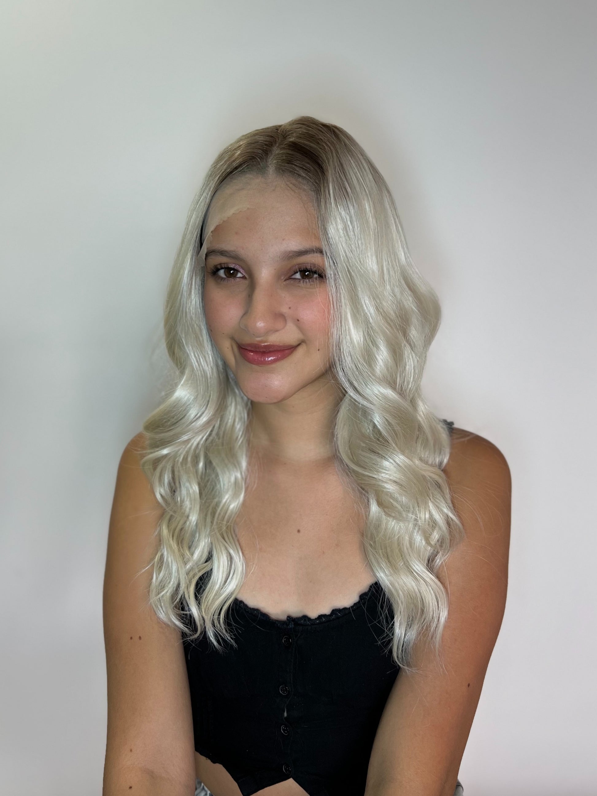 La Alba Lunar – Lace es un tributo a la pureza y el resplandor de la luna llena en el horizonte. 🌕✨ Su tono rubio blanco etéreo ilumina cualquier look, mientras su corte en capas onduladas aporta movimiento natural, volumen y frescura en cada peinado.