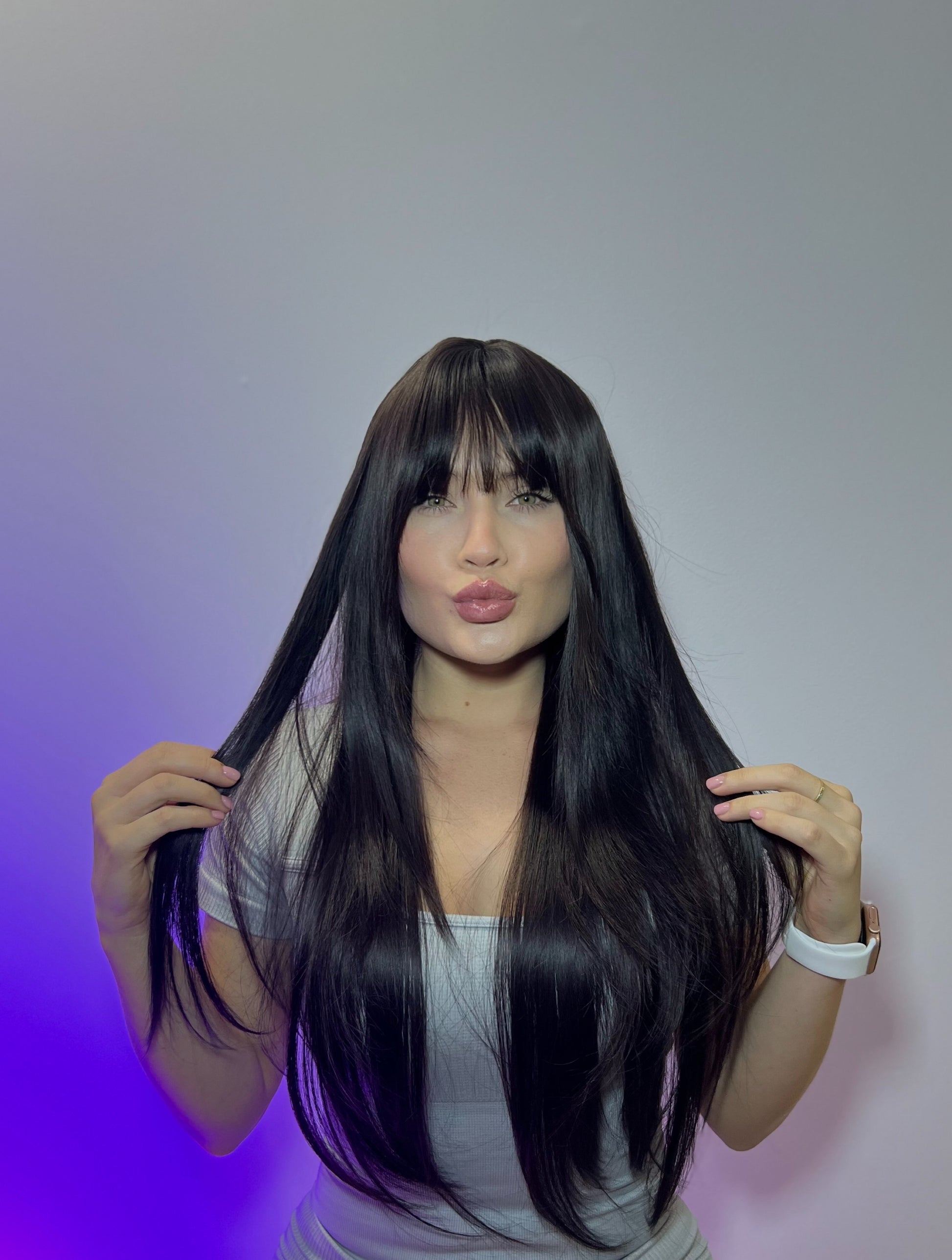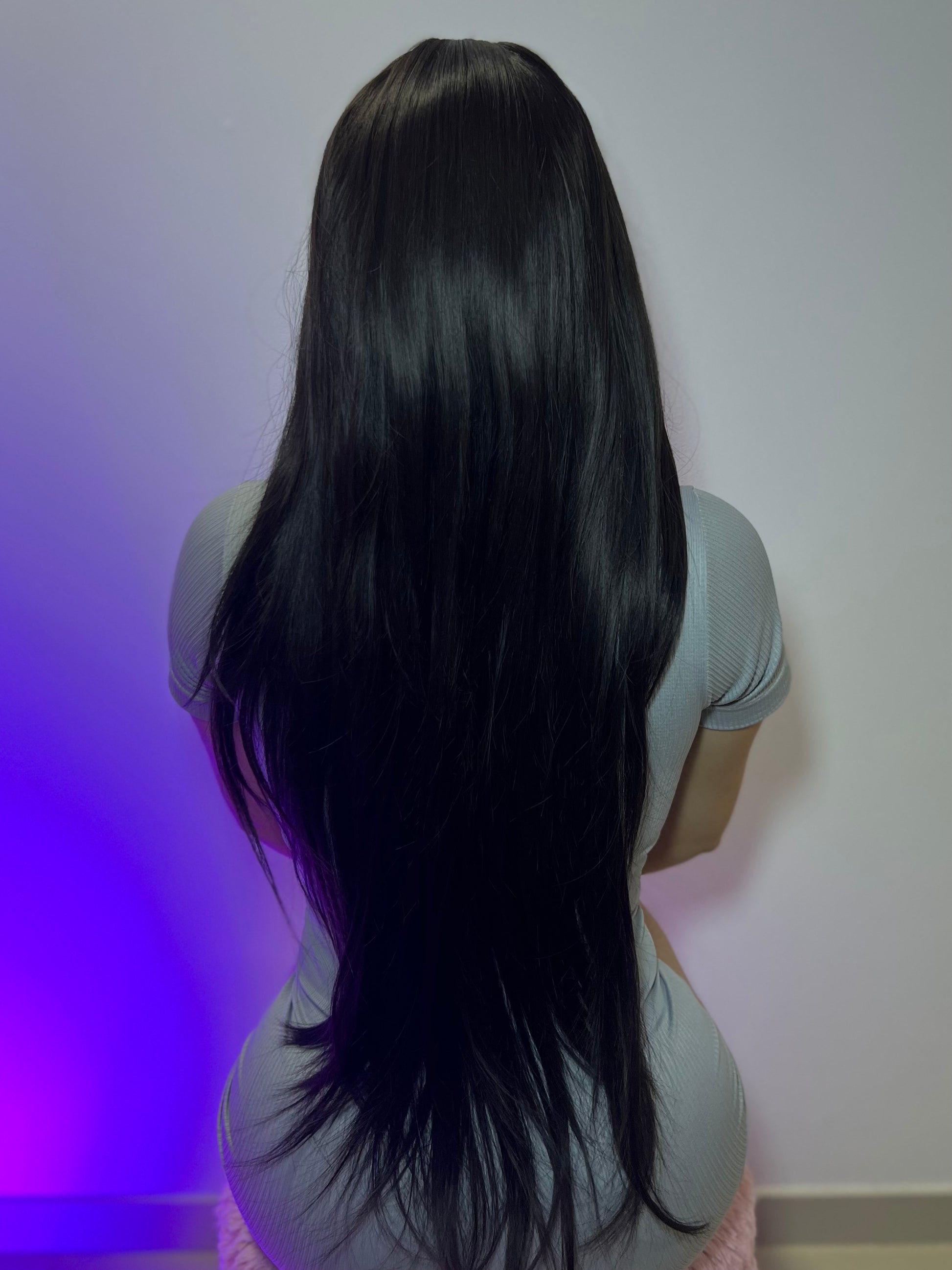 Como un rayo de luna filtrándose entre las nubes, esta peluca combina elegancia y movimiento natural.