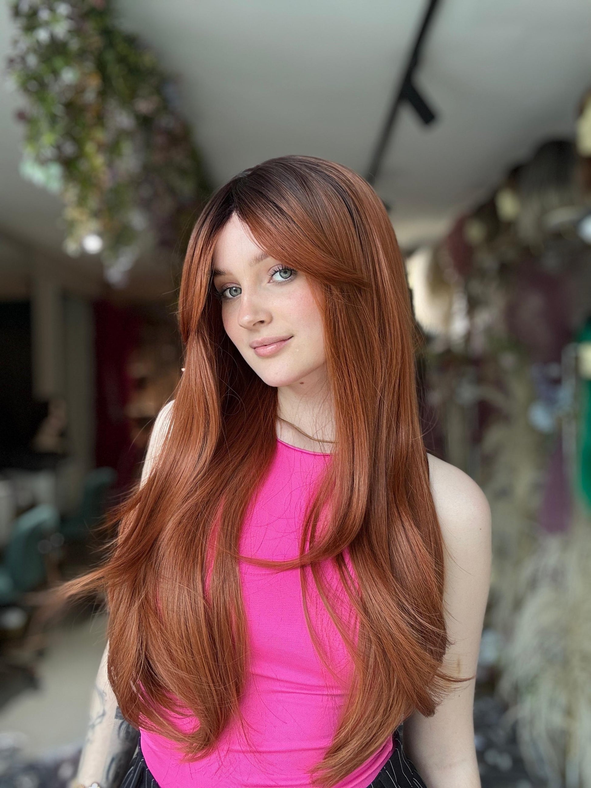 La peluca cobre lacia larga se convierte en Hestia, un símbolo de fuerza interior, pasión y calidez 🔥✨.