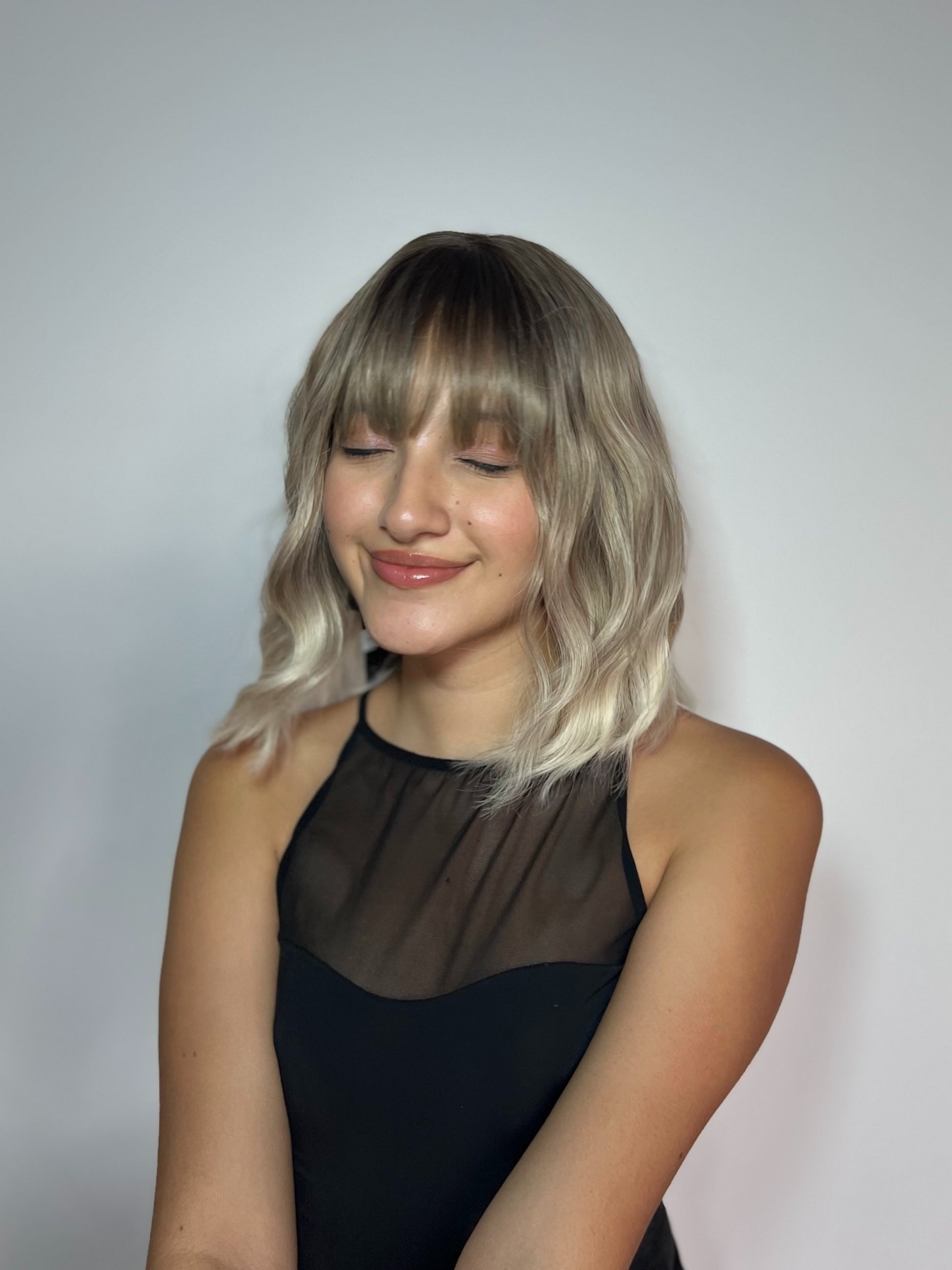 Su contraste entre raíz oscura y largos rubios simboliza la unión de la noche y el día, el misterio y la claridad. Cada mechón se mueve con naturalidad, creando un look sofisticado y encantador, perfecto para quienes desean un estilo auténtico, moderno y lleno de energía lunar. 🌙💫