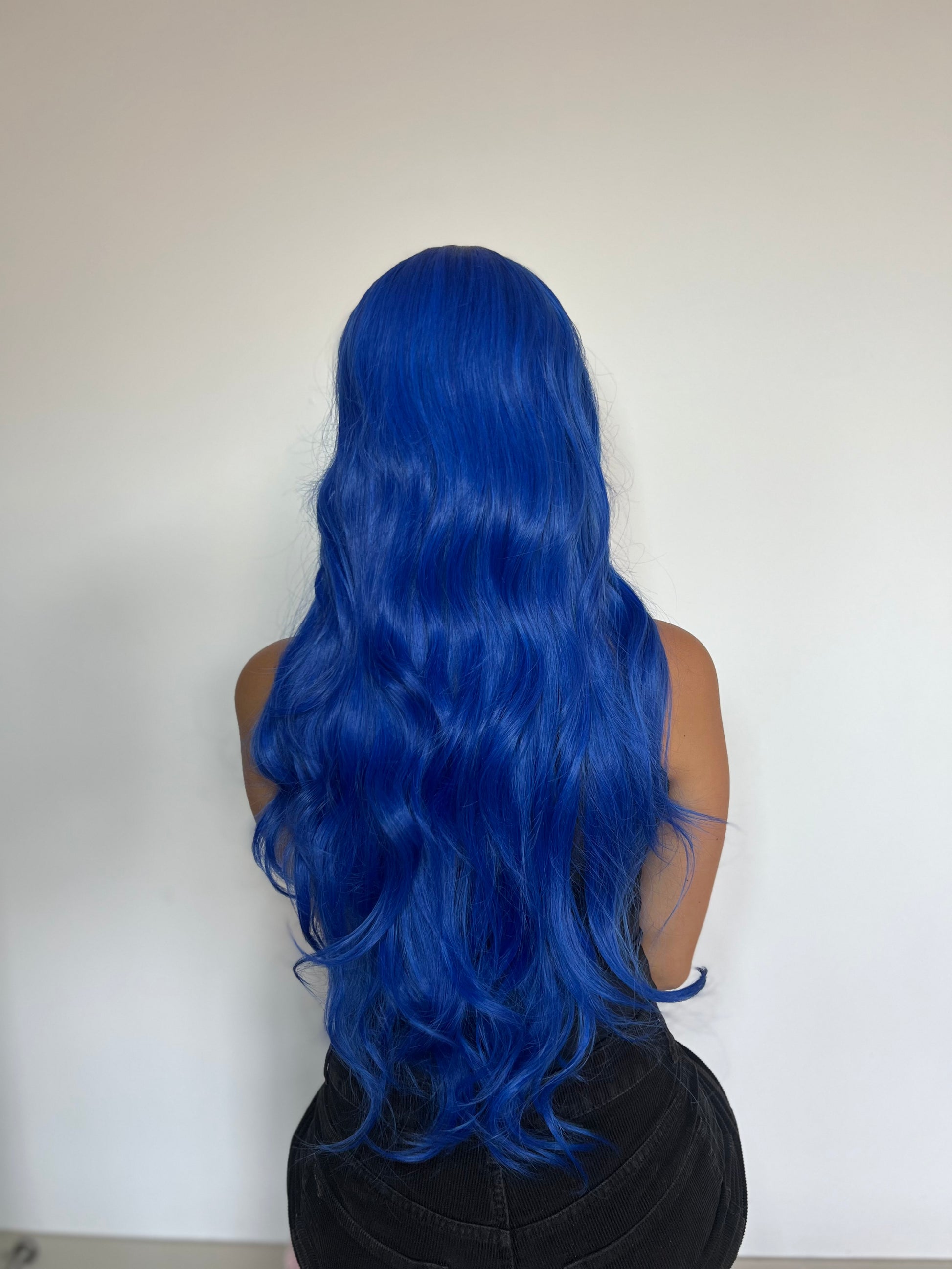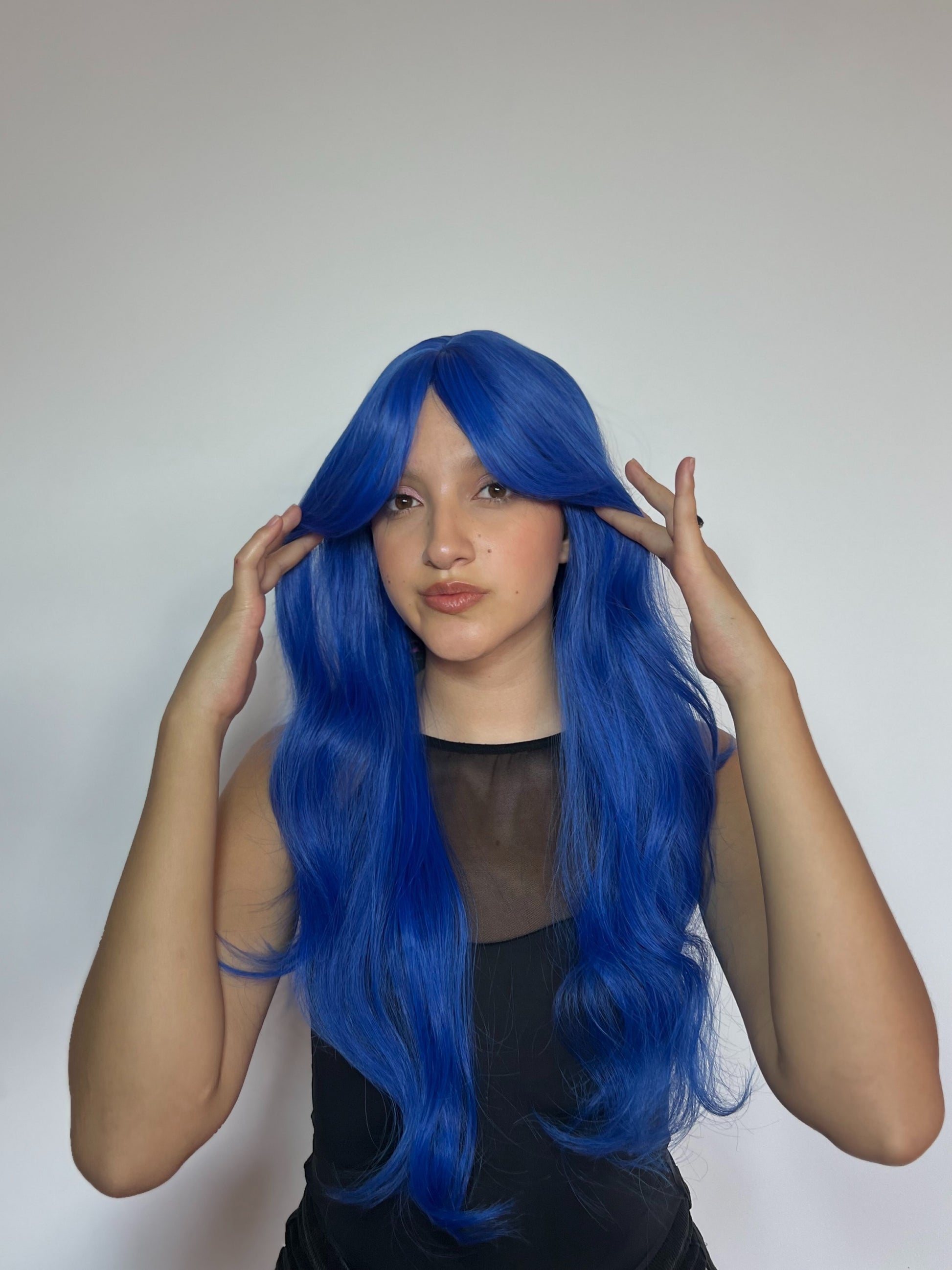 Esta peluca de azul rey profundo y ondas suaves evoca la fuerza magnética de la luna llena sobre el océano, ese instante en que todo se ilumina y la magia fluye sin límites 🌊🌙.