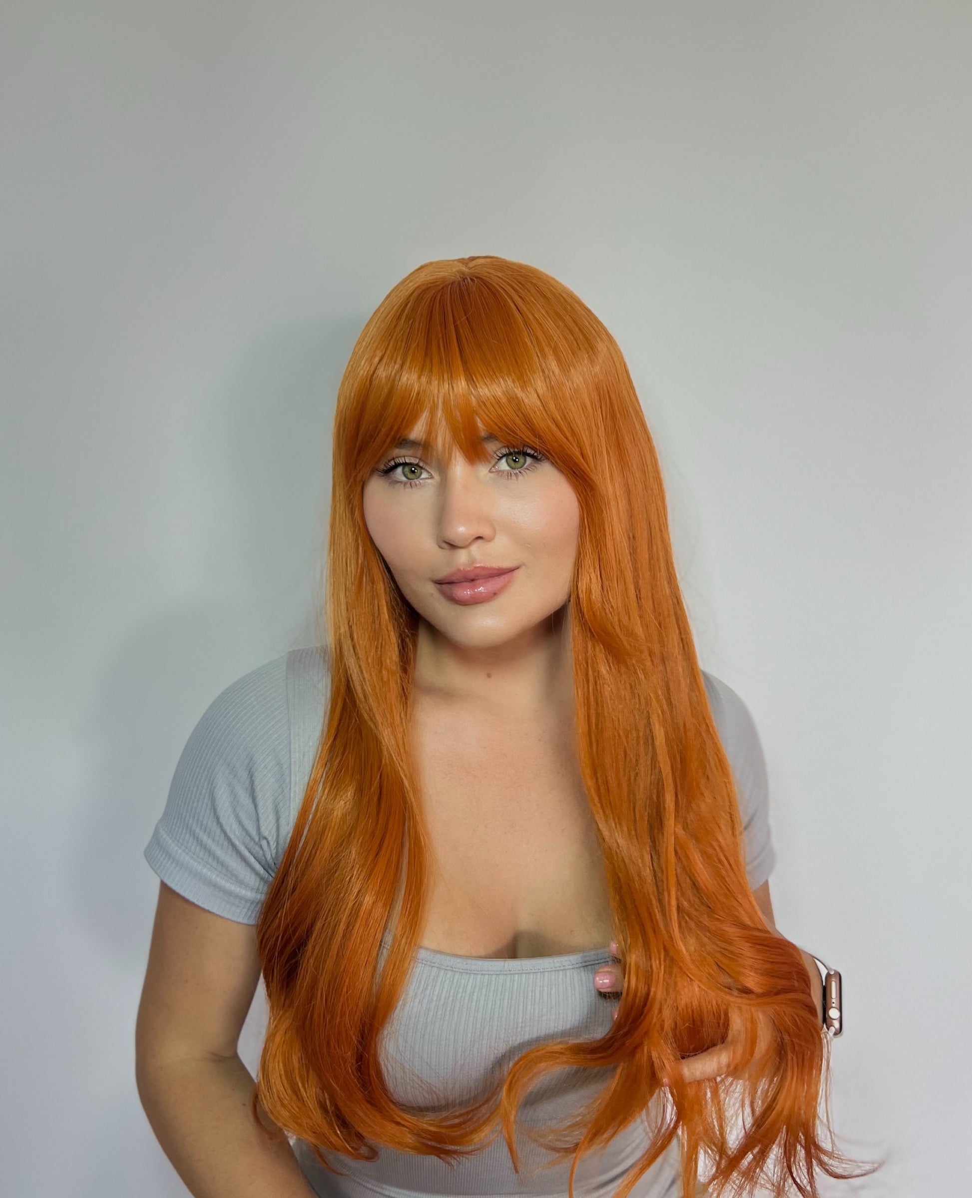 Esta peluca en cobre encendido ilumina tu rostro con destellos de energía y pasión. Su caída larga y ondulada crea un efecto magnético, perfecto para quienes desean destacar con fuerza y elegancia.