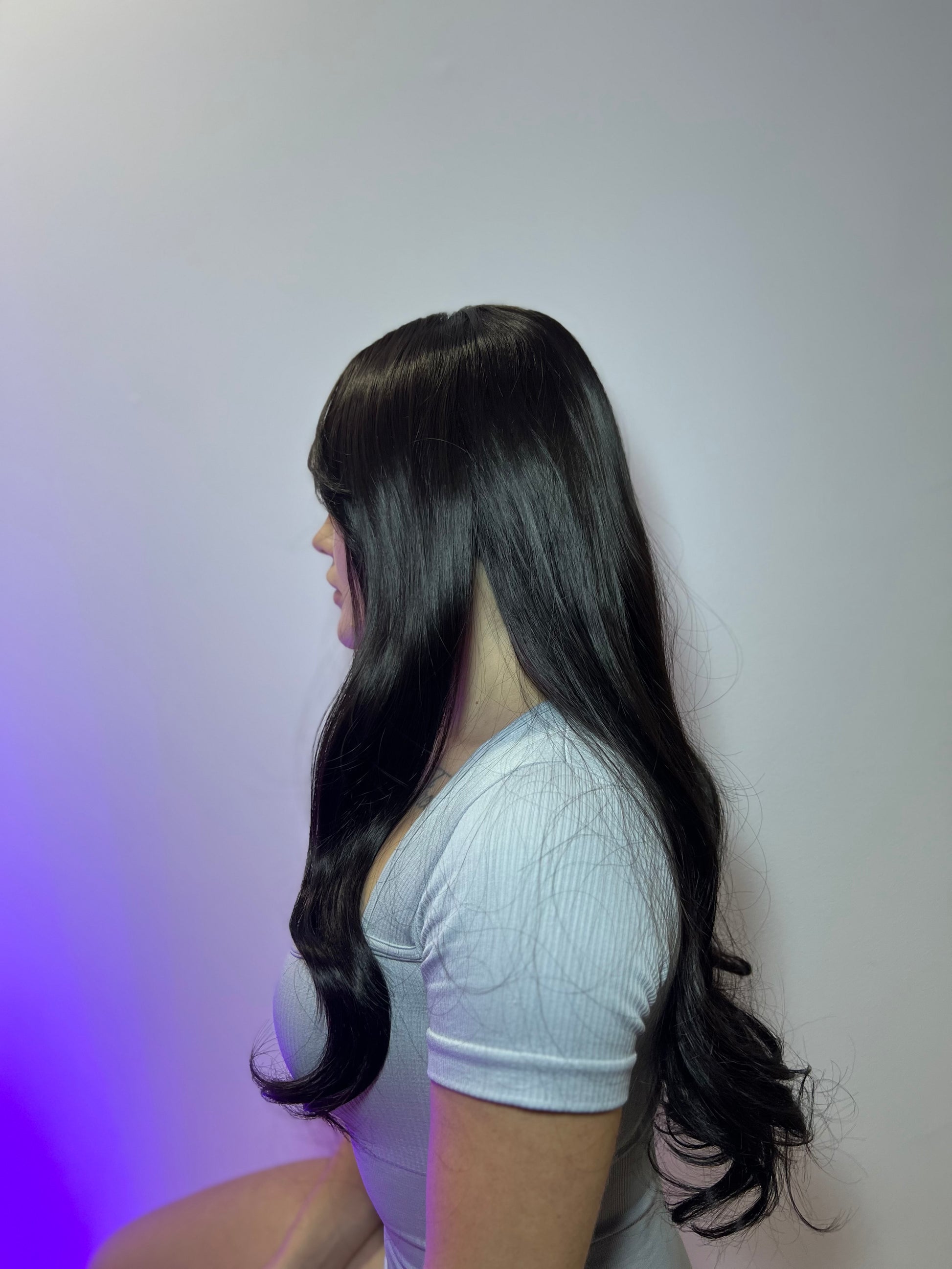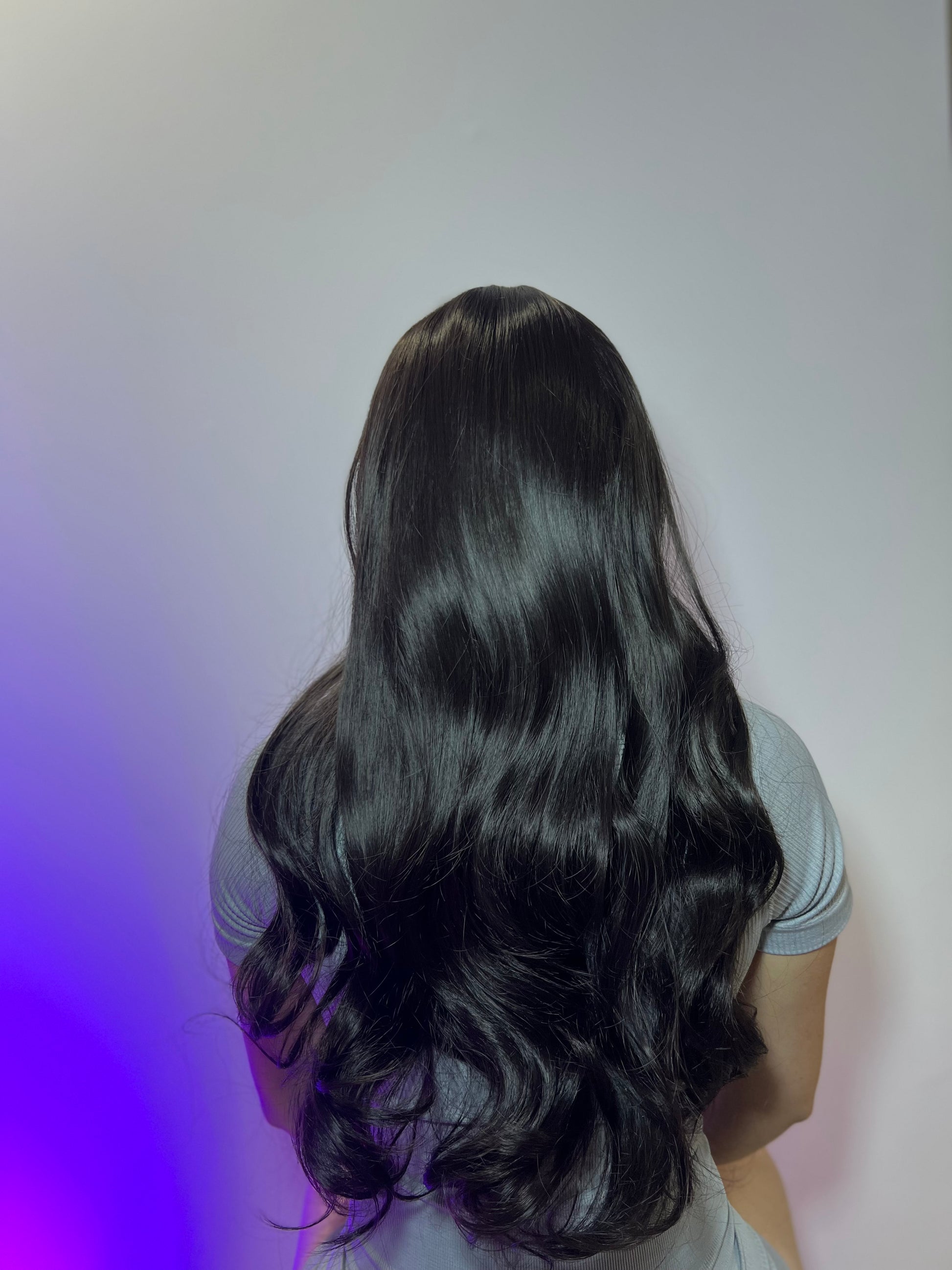 Sumérgete en el misterio y la elegancia con esta peluca en un tono negro intenso, símbolo de poder, sensualidad y sofisticación. Sus ondas largas y definidas caen con un movimiento natural, brindando volumen y un look imponente que roba miradas.