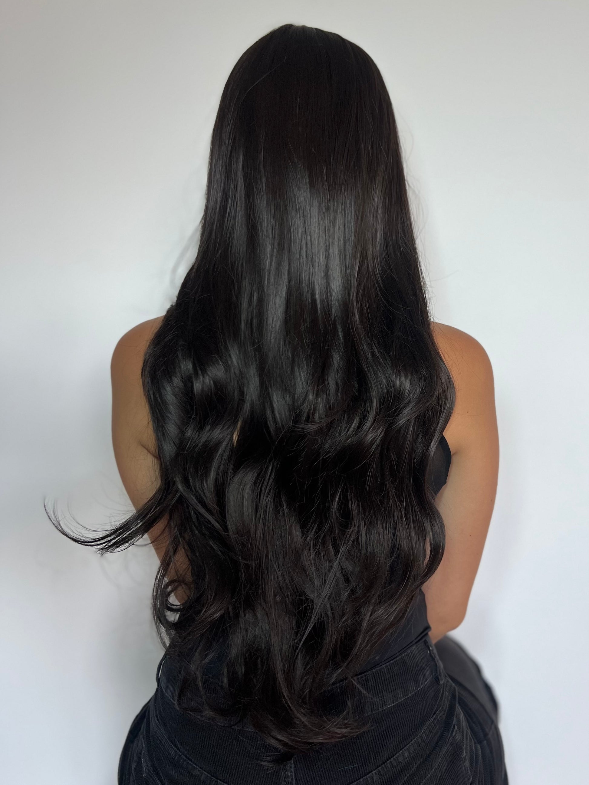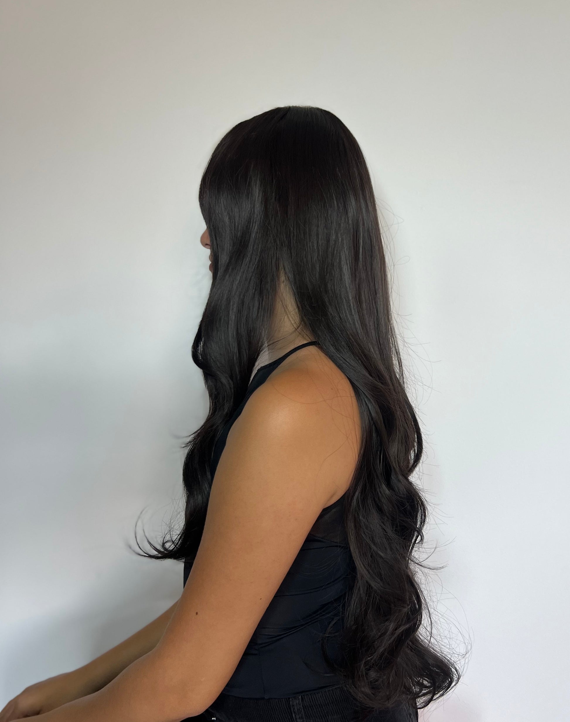 Su caída natural en capas aporta volumen y fluidez, como un eclipse que revela poco a poco la magia oculta de la luna 🌌.