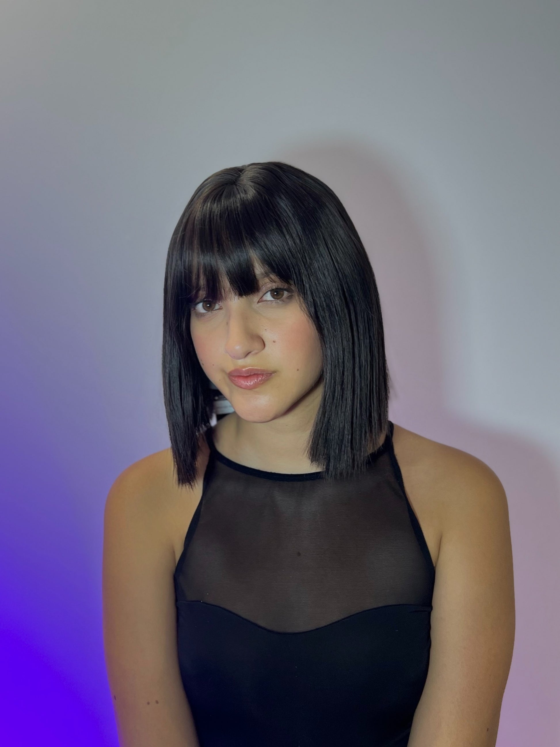Nocturna Ébano es la definición de elegancia atemporal. Su corte bob al cuello con caída lacia y pulida enmarca el rostro con un estilo sobrio pero poderoso, como la noche más profunda iluminada por un aura de misterio. 🌌✨